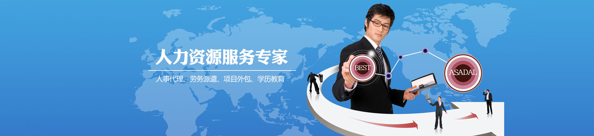 ?????我們將根據(jù)各企事業(yè)單位的需求,提供優(yōu)質(zhì)的人力資源外包服務(wù)。在面向二十一世紀(jì)的今天,我們將與時俱進(jìn)的順應(yīng)國際化人力資源發(fā)展趨勢,創(chuàng)新、超越、不斷進(jìn)取,以我們的專業(yè)為客戶創(chuàng)造更大的價值,追求與客戶共同展開騰飛的雙翼,努力創(chuàng)造明日的輝煌。